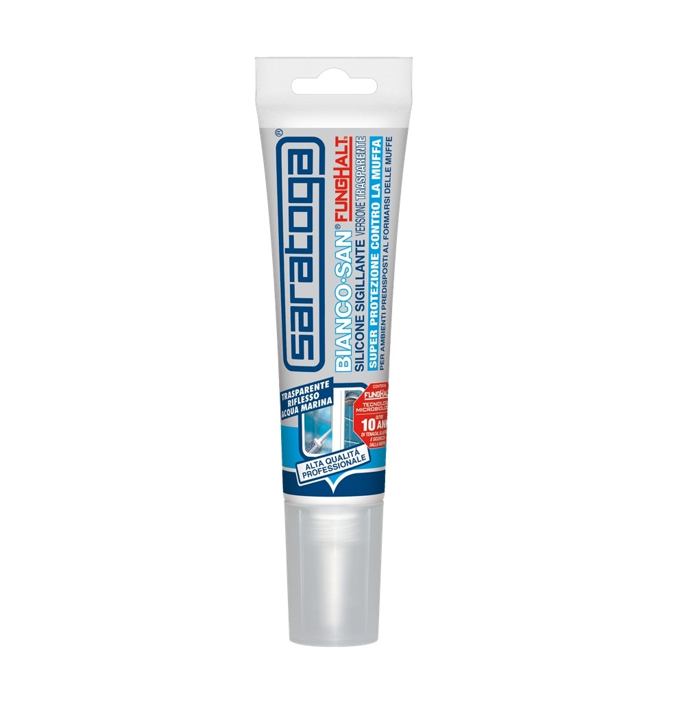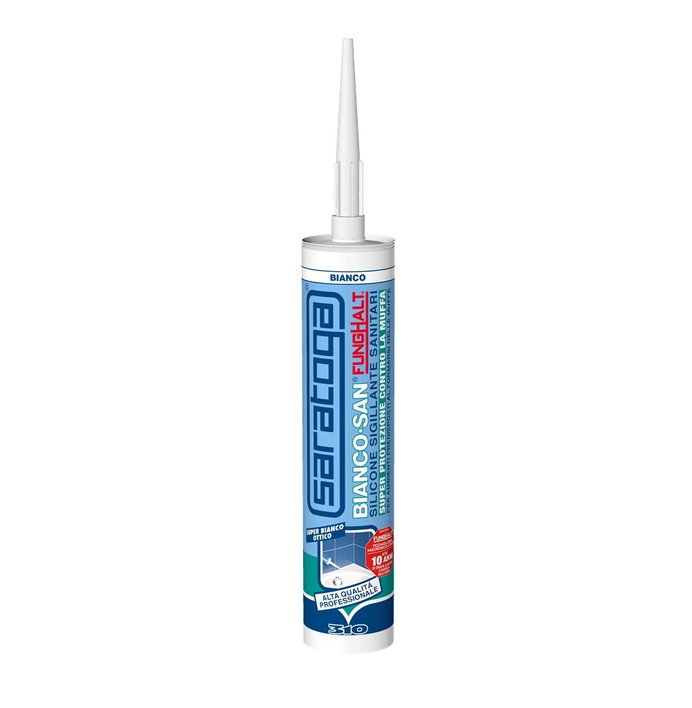Saratoga BIANCO•SAN è il sigillante monocomponente a reticolazione acetica specificamente studiato per sanitari, bagni, cucine.