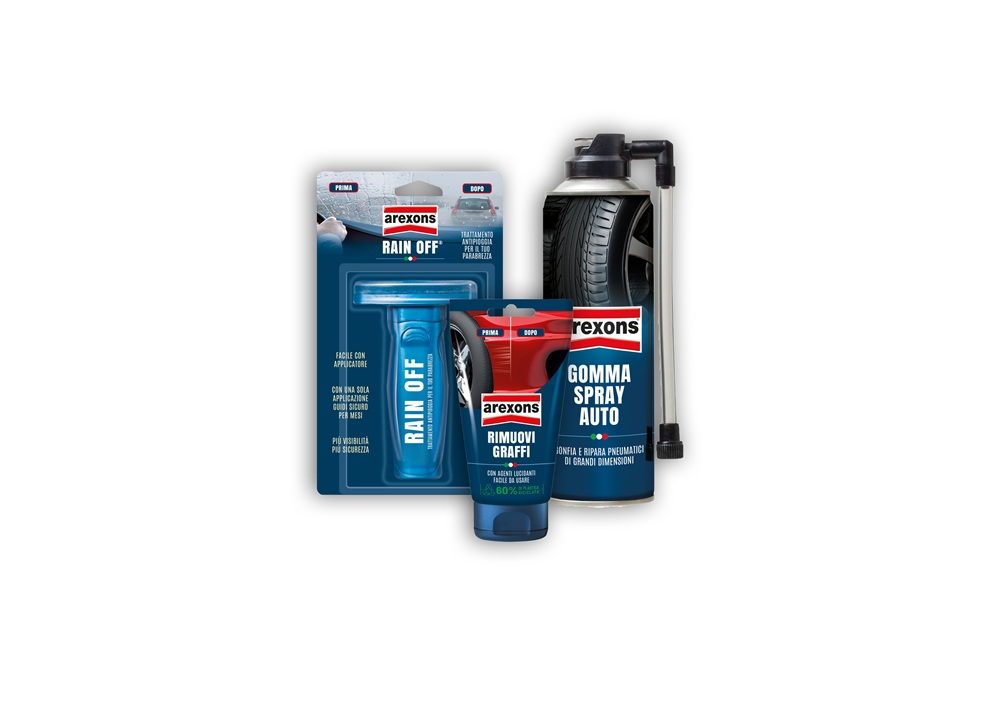 Tre soluzioni tecniche pensate per affrontare in autonomia gli inconvenienti più comuni della guida quotidiana: Rimuovi Graffi impiega una formulazione specifica con microparticelle selezionate per eliminare i graffi superficiali e attenuare quelli più profondi senza rischiare di danneggiare la carrozzeria. È particolarmente efficace nella rimozione di residui di vernice o gomma lasciati da urti e sfregamenti. Gli agenti lucidanti integrati restituiscono alla vernice la sua brillantezza originale. Gomma Spray Auto sigilla la foratura e rigonfia lo pneumatico in un’unica operazione pratica e pulita. È compatibile sia con gomme dotate di camera d’aria sia con pneumatici tubeless, e permette di intervenire senza smontare la ruota e senza sporcarsi le mani: una soluzione rapida per tornare subito in movimento. Rain Off è un trattamento idrorepellente per parabrezza che, applicato prima della pioggia, crea un film protettivo capace di far scivolare via l’acqua già a 50–60 km/h. La sua formulazione fa condensare l’acqua in goccioline che scorrono velocemente verso il basso, mantenendo il cristallo pulito e trasparente anche durante i temporali. L’applicatore integrato semplifica il processo e garantisce una stesura uniforme. Tip: conservarli insieme in una pouch nel bagagliaio li rende immediatamente disponibili in qualsiasi situazione. I prodotti Arexons sono disponibili nei principali punti vendita della grande distribuzione, nei negozi specializzati e sui canali e-commerce dei rivenditori autorizzati.