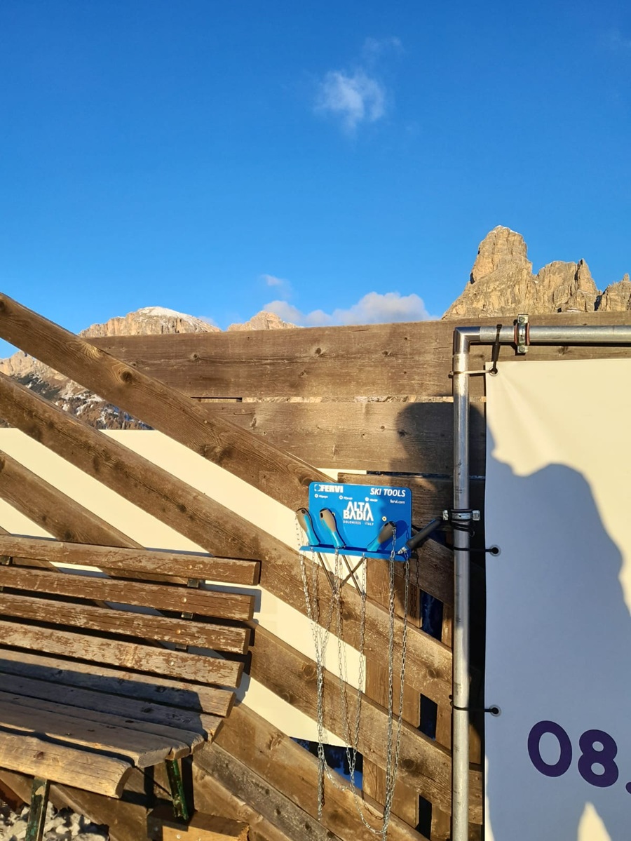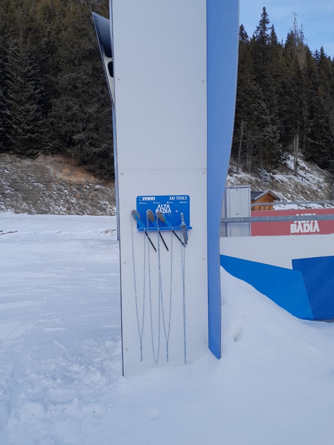 Dopo le precedenti esperienze in altri comprensori sciistici delle Dolomiti, FERVI realizza un nuovo intervento, dedicato a migliorare l’esperienza degli appassionati di sci installando pannelli attrezzati in prossimità degli impianti di risalita per piccoli interventi su sci e attacchi