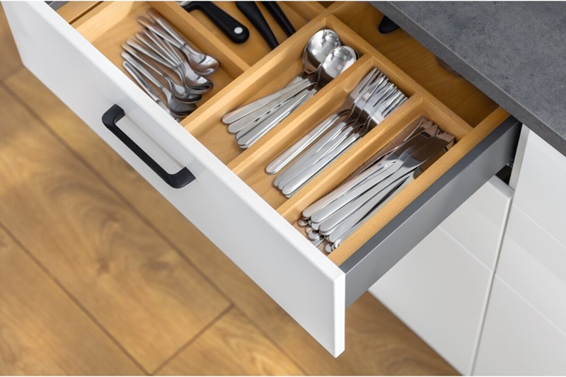 Allo stesso tempo, i fianchi sottili da 14 mm creano più spazio utile all’interno del cassetto. Il risultato è una soluzione di contenimento più intelligente, senza aumentare le dimensioni dei mobili, il tutto con un look pulito e minimalista perfettamente in linea con il design contemporaneo.