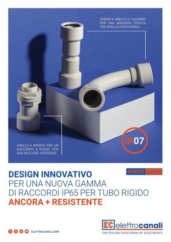 Elettrocanali, azienda italiana presente a livello internazionale nel settore dei componenti e sistemi per installazioni elettriche per i settori industriale, terziario e domestico, prosegue la propria attività di rinnovamento - intrapresa a inizio 2023 con il restyling di logo e payoff - presentando la nuova serie di raccordi stagni IP65 per tubo rigido.