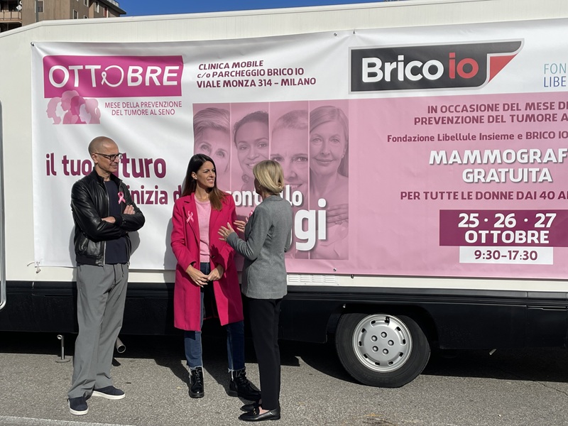 Per tre giorni (25, 26, 27 ottobre), presso il punto vendita Brico io di Viale Monza 314, a Milano, tante donne over 40 hanno potuto effettuare una mammografia gratuita nella “Clinica della Salute”, due van attrezzati posizionati all’interno del parcheggio del negozio.