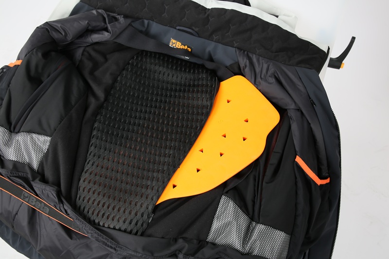 BWX mette al centro anche la sicurezza: la tuta integra, infatti, il riflettore Recco®, tecnologia di sicurezza sempre attiva che facilita l’individuazione in caso di emergenza o smarrimento in ambiente innevato e un paraschiena integrato amovibile certificato EN 1621-2:2014 con protezione Full Back. Il tutto senza tralasciare il design: i colori nero opaco, grigio antracite e titanio si fondono con inserti in arancione Beta, effetti metallici e dettagli in carbonio.