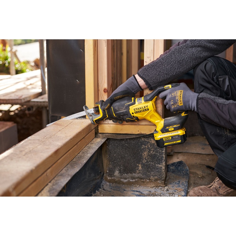 Parte del sistema STANLEY FATMAX V20, la sega universale funziona con batterie agli ioni di litio da 18V, caratterizzate da assenza di effetto memoria e minima autoscarica, per essere sempre pronte all’uso anche dopo periodi di inattività.